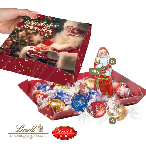 Große Freude schenken! Die Editions-Mischung mit zartschmelzender Lindt Schokolade lässt Genießerherzen höher schlagen. Die Verpackung ist komplett individuell bedruckbar. Produktdetails: Exklusive Markenschokolade, verpackt in einer individuellen Werbekartonage. Gleich mitbestellen: Einzelversandkarton für den Postversand: 0,75 Euro pro Stück. Nachhaltigkeit: Wir verwenden FSC®-zertifizierten Karton aus nachhaltiger Forstwirtschaft und anderen kontrollierten Quellen. Für jede Bestellung mit uns wird ein Baum über Grow my Tree gepflanzt.
