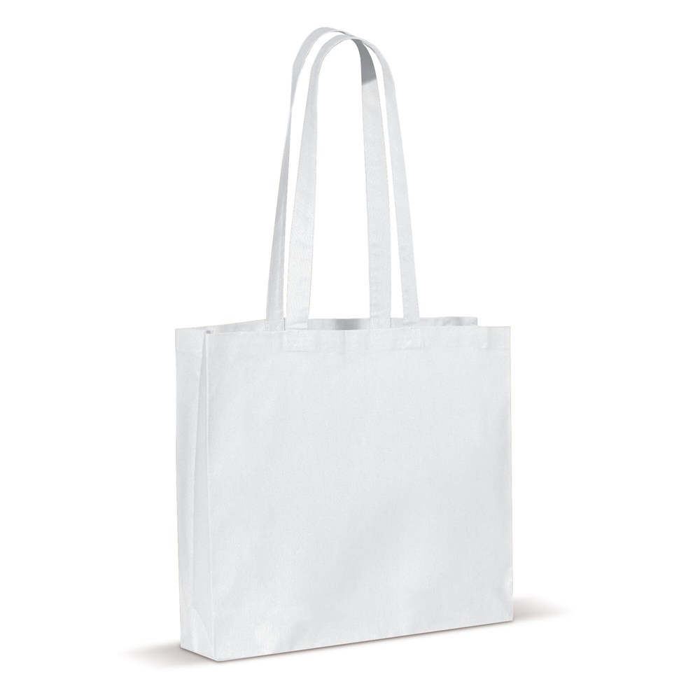 Klassische Umhängetasche aus Baumwolle mit Bodenfalte, ideal für Werbeaktionen. Diese OEKO-TEX® zertifizierte Tasche ist eine nachhaltige Wahl.