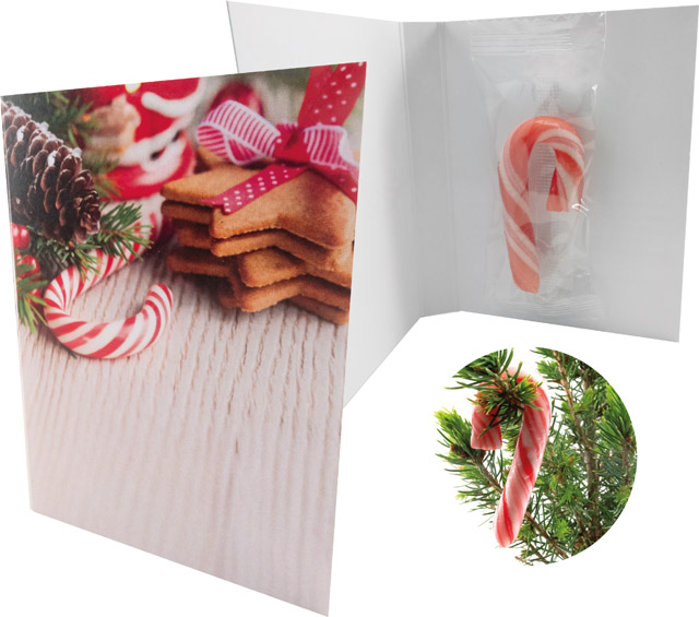 Begeistern Sie Ihre Kunden mit diesem originellen essbaren Baumschmuck. Die kleine Zuckerstange ist ein echter Hingucker. Die Karte im Standardmotiv bietet Platz für Ihren Werbeeindruck. Eine komplette individuelle Gestaltung ist auch ab 250 Stück möglich. Inhalt: Zuckerstange ca. 5 cm