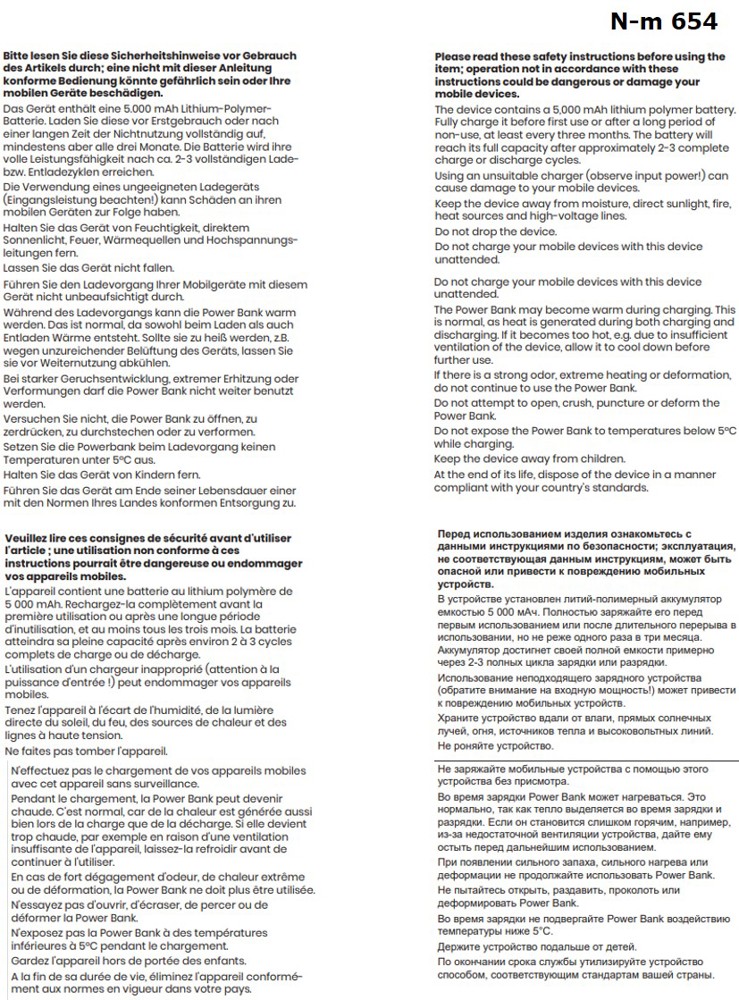 Handliche Powerbank in edlem Weiß. Mit vierstufiger LED- Ladestandanzeige auf der Vorderseite. Kapazität: 5000mAh Input Micro-USB und USB-C: DC 5V/2.1A (max.) Output USB-C: DC 5V/2.1A Output USB-A1: DC 5V/1A Output USB-A2: DC 5V/2.1A Output kombiniert: DC 5V/2.1A (max.) Inklusive 25 cm USB-A auf USB-C Kabel Material: ABS Plastikfreie Einzelverpackung Maße: 95,5 x 63,5 x 14,5 mm Gewicht ohne Verpackung: 119 g