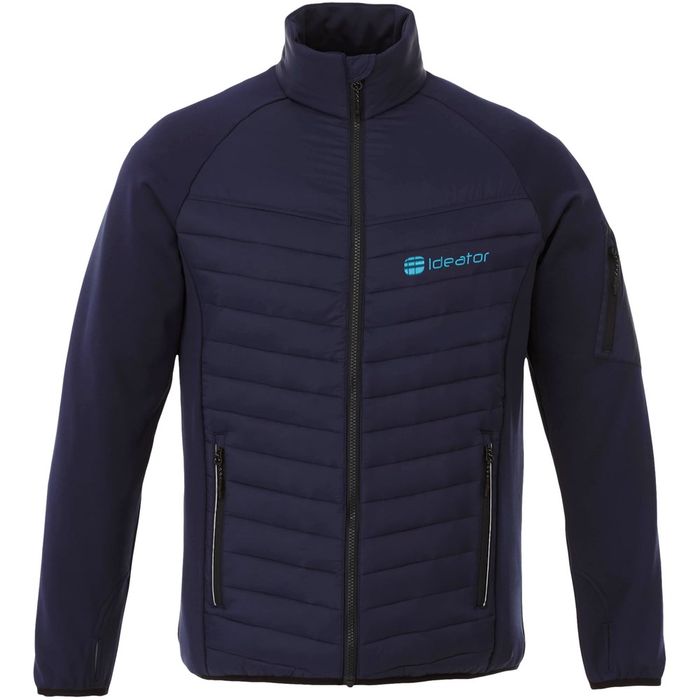 Die Banff Hybrid-Isolierjacke für Herren - eine perfekte Kombination aus Stil und Leistung. Die innere Sturmklappe sorgt dafür, dass der Wind nicht durch die Jacke dringt, und der verlängerte hintere Saum sorgt für zusätzliche Abdeckung und Wärme. Das elastische Bündchen in einer Kontrastfarbe setzt einen stilvollen Akzent und sorgt für einen sicheren Sitz. Das matte 380T-Gewebe der Jacke ist wasserabweisend und daunendicht und besteht aus Nylon (38 g/m2). Der Kontraststoff ist ein Interlock-Gewebe aus Polyester und Elastan (245 g/m2), das für Flexibilität und Komfort sorgt. Die Fake-Daunenisolierung aus Polyester sorgt für leichte Wärme, perfekt für kühle Tage.