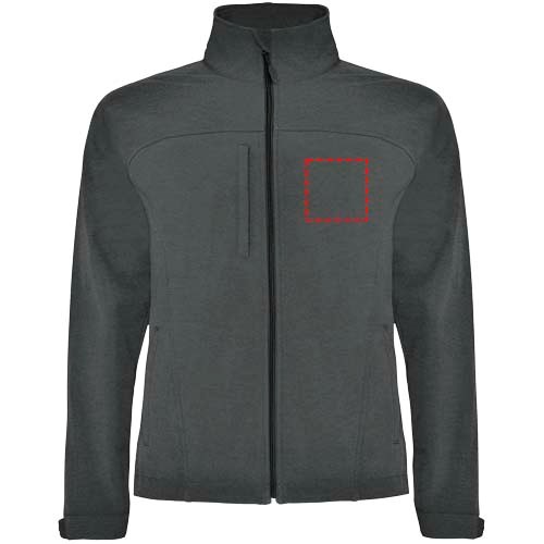 3-lagige Softshell-Jacke: Durchgehender Reißverschluss mit Kinnschutz und Zipper. Außentasche auf der Brust mit Reißverschluss und Zipper. Außentaschen mit Reißverschluss und Zipper. Klettverschlüsse an den Ärmelbündchen. Ausschnitt oder Paspel auf der Vorderseite der Brust. Ausschnitt oder vorgeformter Einsatz am Rücken. Saum mit elastischer Kordel und verstellbaren Stoppern innen. 1000 mm Wassersäule. Winddicht. Das Modell ist 184 cm groß und trägt Größe L.