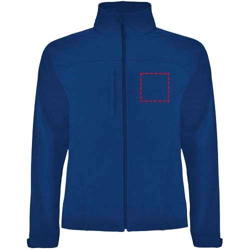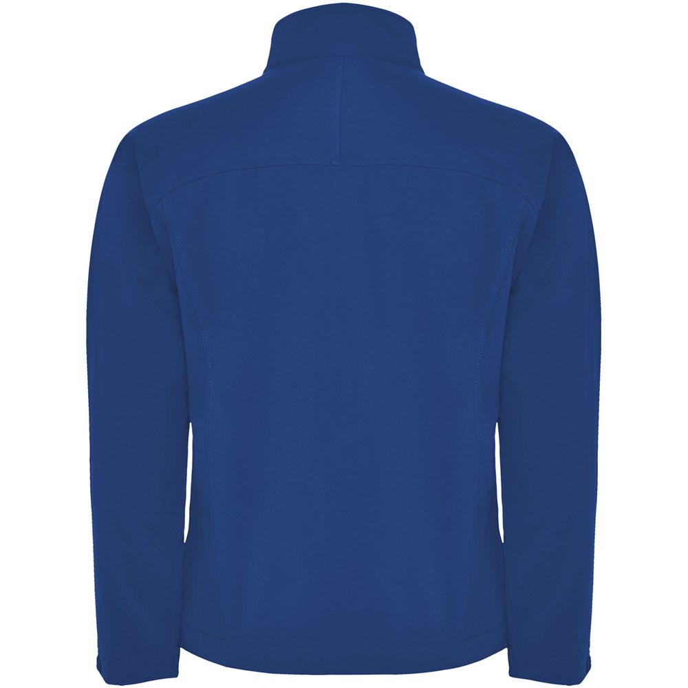 3-lagige Softshell-Jacke: Durchgehender Reißverschluss mit Kinnschutz und Zipper. Außentasche auf der Brust mit Reißverschluss und Zipper. Außentaschen mit Reißverschluss und Zipper. Klettverschlüsse an den Ärmelbündchen. Ausschnitt oder Paspel auf der Vorderseite der Brust. Ausschnitt oder vorgeformter Einsatz am Rücken. Saum mit elastischer Kordel und verstellbaren Stoppern innen. 1000 mm Wassersäule. Winddicht. Das Modell ist 184 cm groß und trägt Größe L.