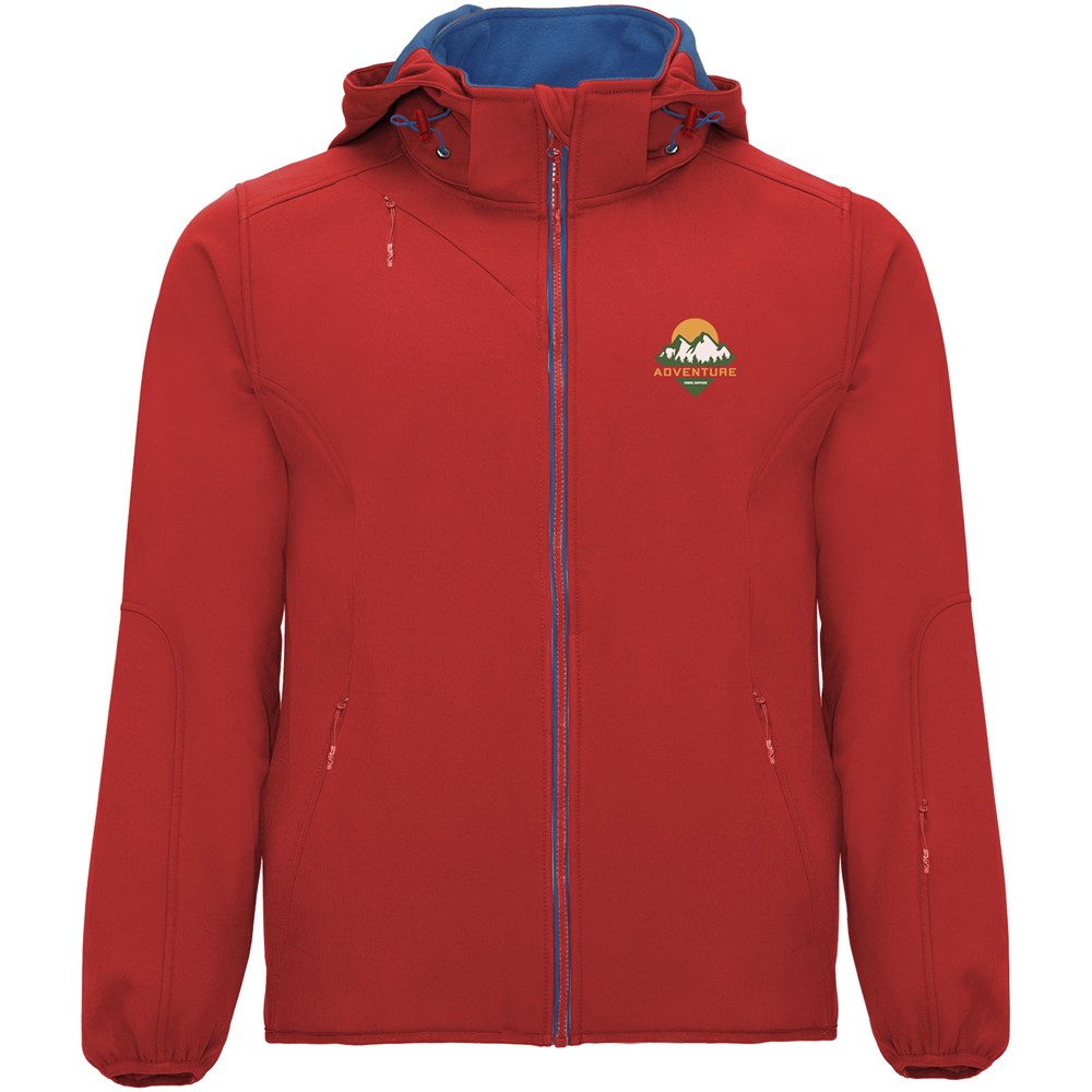 2-Lagen-Softshell mit sportlichem Schnitt, kontrastfarbigem Reißverschluss mit Kinnschutz und Zipper. Innenfutter aus kontrastfarbigem Mikrofleece. Außentasche auf der rechten Brust mit verdecktem Diagonal-Reißverschluss. Zwei Seitentaschen mit verdecktem Reißverschluss. Tasche auf dem linken Ärmel. Elastische Bündchen an Ärmeln und Saum. Einrollbare Kapuze mit kontrastfarbigem Micropolar-Futter. Herausnehmbares Etikett. Wasserabweisend. Winddicht. Das männliche Modell ist 185 cm groß und trägt Größe M, das weibliche Modell ist 174 cm groß und trägt Größe S.