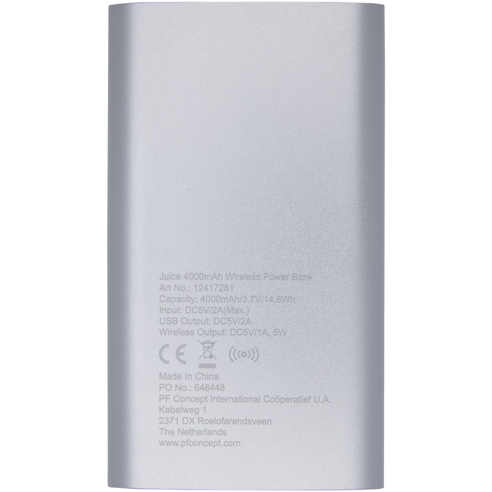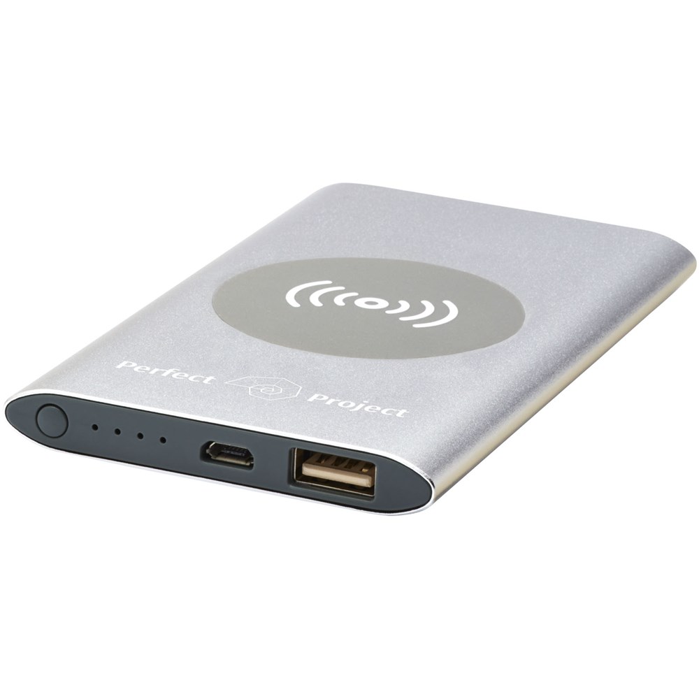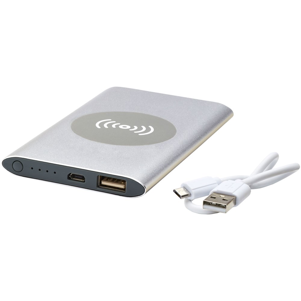 4000 mAh Powerbank mit Aluminiumgehäuse. Unterstützt kabelloses Laden mit 5 W und wird auch mit Mikro-USB-Ausgang geliefert, um das Aufladen per Kabel zu ermöglichen. Mit dem 4000 mAh Lithium-Polymer-Akku kann ein Smartphone vollständig aufgeladen werden. Leistungsanzeige, die jederzeit den Energiepegel anzeigt. Mikro-USB-Anschluss: 5 V/2 A Ausgang: 5 V/2A. Kabelloser Ausgang 5 W. Inklusive PVC-freiem TPE Kunststoff Ladekabel. Lieferung in einer Standard-Geschenkbox.