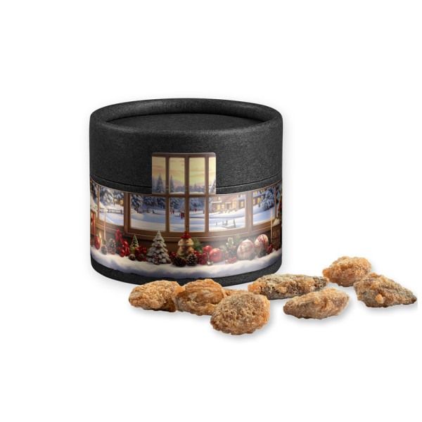 Feuergebrannte Mandeln ohne Zuckerzusatz, ca. 40g, Kraftpapierdose Mini schwarz