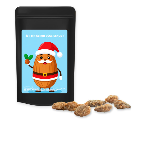 Feuergebrannte Mandeln ohne Zuckerzusatz, ca. 30g, Standbeutel Mini schwarz