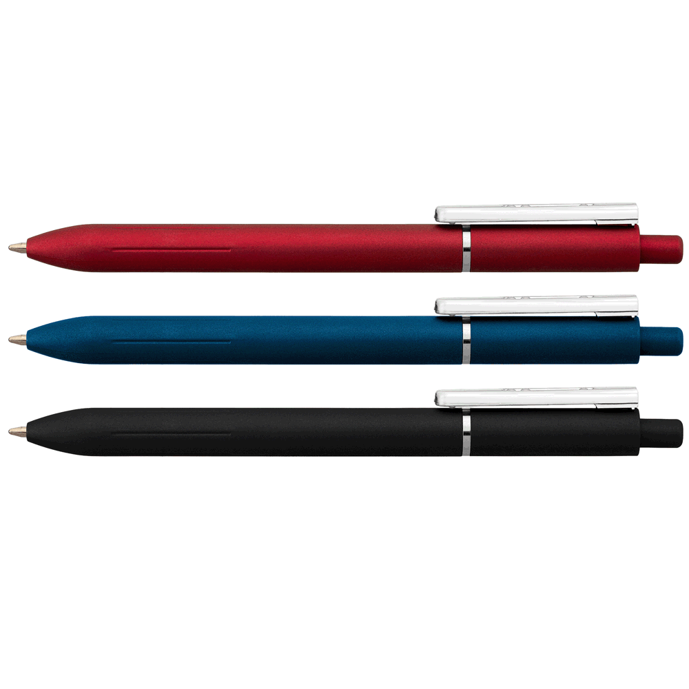**Demnächst verfügbar – Mitte März** Unser Lark Kugelschreiber ist ein unverwechselbares Schreibgerät, das gleichzeitig als entspannendes Schreibtischaccessoire dient. Der Schaft und der Druckknopf dieses Click-Kugelschreibers bestehen aus recyceltem Kunststoff (rABS) und sind mit einer eleganten Metallic-Gummifarbe und Chromakzenten versehen. Das herausragende Merkmal ist der Stahlclip, in dem sich drei schwimmende, bewegliche Kugeln in einer Rille befinden. Diese Kugeln gleiten sanft auf und ab und sorgen für eine entspannende Ablenkung und ein befriedigendes Spielelement. Der Kugelschreiber ist mit einer hochwertigen Parker-Mine ausgestattet, die schwarze Tinte durch eine 1,0 mm Spitze abgibt und eine Schreiblänge von 500 Metern bietet.