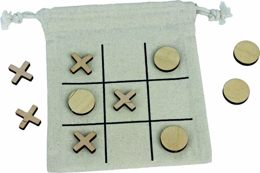das weltbekannte Spiel wird aus Birkensperrholz in der EU hergestellt. Jedes der fünf X und fünf O kann mit einem Branding versehen werden. Die 14 Einzelteile stecken in einer flachen Platte und werden inklusive Steckanleitung geliefert. Ideal als Mailingverstärker. Aus naturbelassenem Birkensperrholz, hergestellt in der EU.