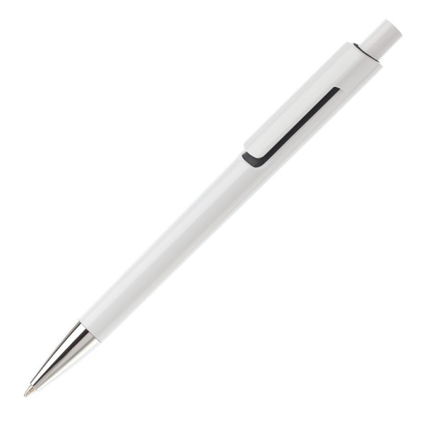 Kugelschreiber mit Drücker, metallisierter Spitze und blauschreibender Jumbo-Mine.
