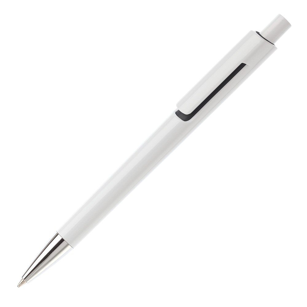Kugelschreiber mit Drücker, metallisierter Spitze und blauschreibender Jumbo-Mine. mehr