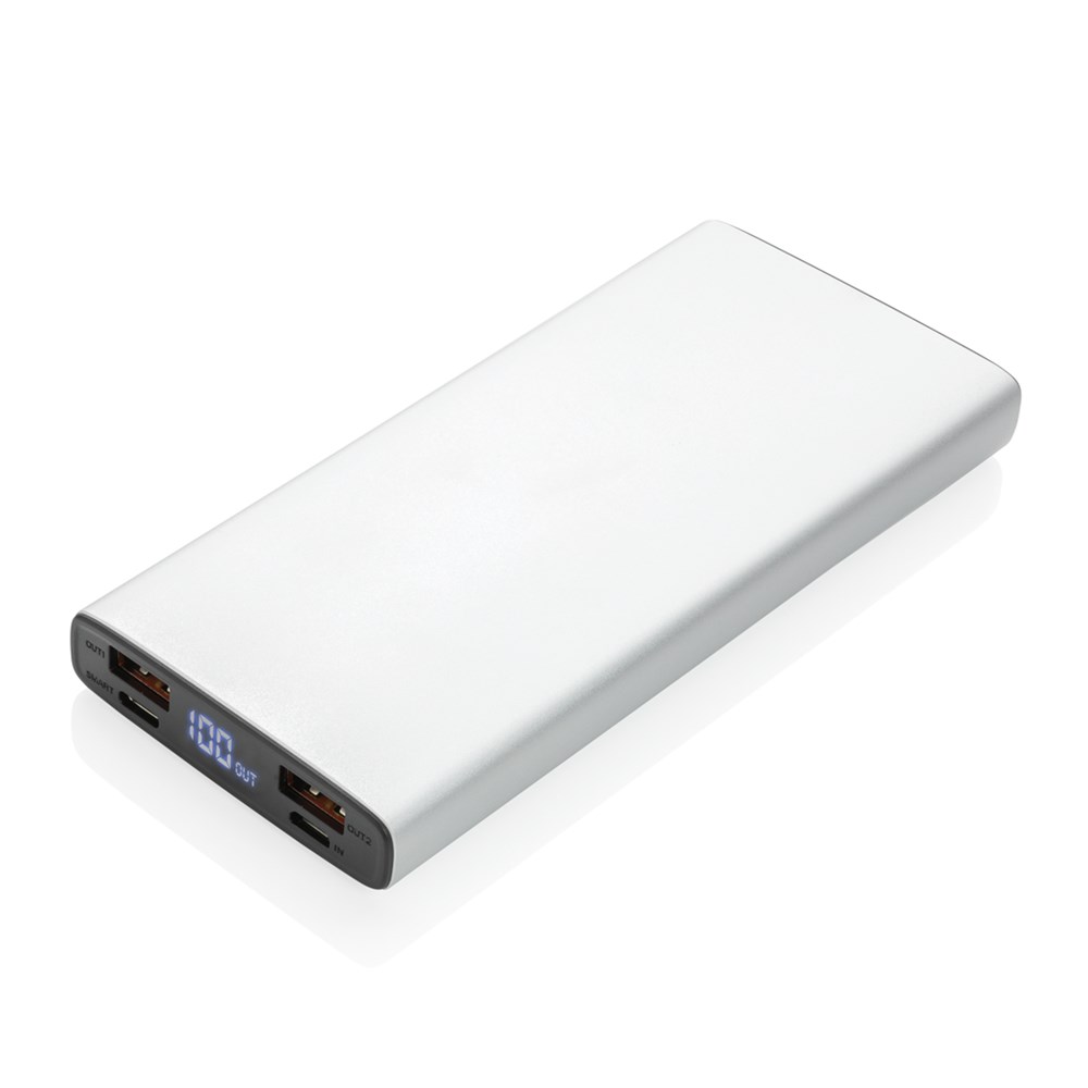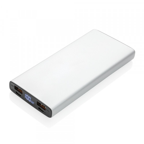 Laden Sie alle Ihre Mobilgeräte mit der schnellstmöglichen Ladegeschwindigkeit auf. Diese 18-W-PD-Powerbank aus Aluminium verfügt über einen ultraschnellen Typ C-Ausgang und einen Quick-Charge 3.0 USB A-Ausgang. Die Powerbank lädt dank Ihres 10.000 mAh-Li-Polymer-Akku, mit Ihr Gerät bis zu fünfmal auf. Mit Batterieladestandsanzeige. Micro-USB-Input 5V/2A; Type-C Input 5V/3A, 9V/2A, 12V/1,5 A; USB-Output 5V/2.1A; Quick-Charge 3.0 Output 5V/3A, 9V/2A, 12V/1,5A; Type-C Output 5V/3A, 9V/2A, 12V/1,5A, max. 18 W (PD 3.0); USB-A-Output: 5V/3A, 9V/2A, 12V/1,5A, maximal 18 W (PD 3,0). Inklusive PVC-freiem Mikro-USB-Ladekabel aus TPE.