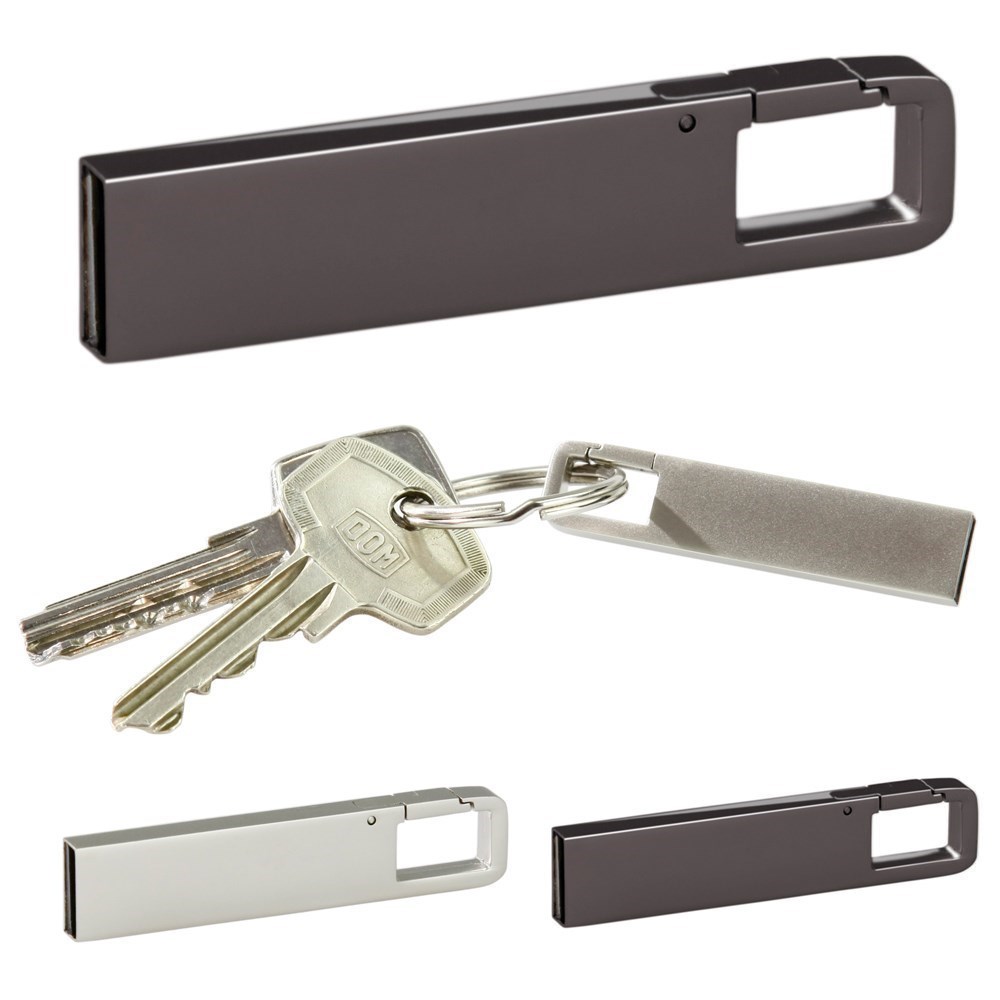 Kleiner USB Stick aus Metall mit einem Karabiner-Haken. Ideal für schnelles Lösen und Befestigen... mehr