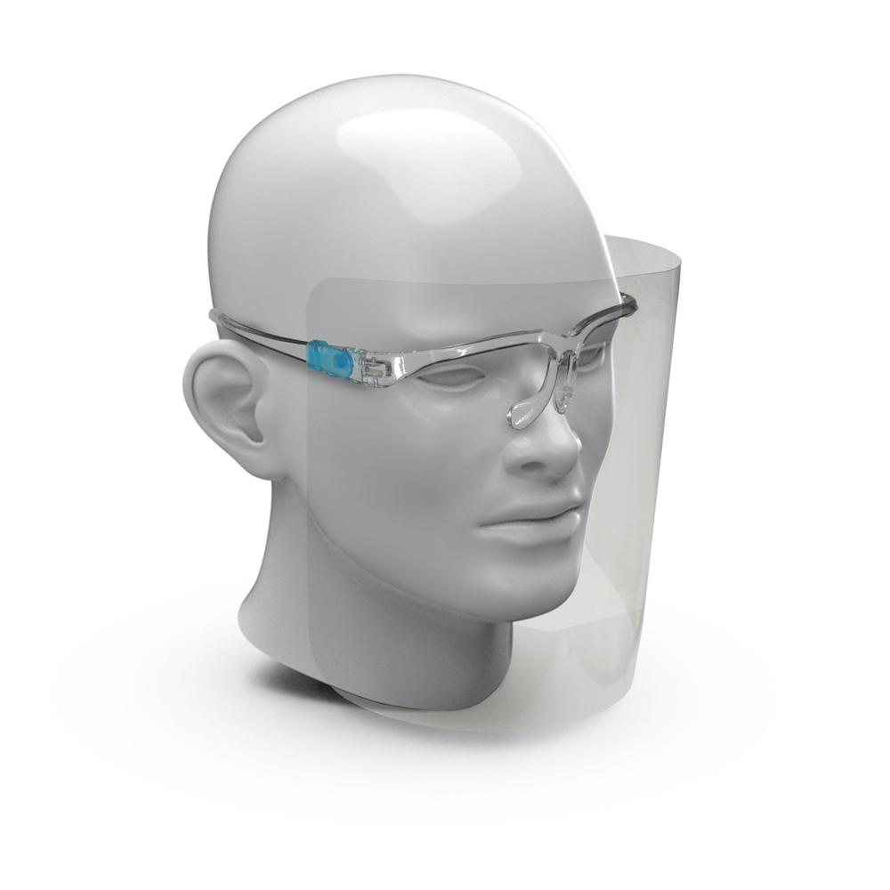 Das Gesichtsvisier bedeckt Augen, Nase und Mund und reduziert das Risiko einer Verbreitung von Tröpfcheninfektionen durch z. B. Husten oder Niesen für den Träger und verhindert ein unbeabsichtigtes Berühren der abgedeckten Stellen. Durch sein simples und durchdachtes Design ist es universell einsetzbar. Das Visier ist für Brillenträger geeignet. Reinigen lässt sich das Visier ganz einfach mit Spülmittel und einem weichen Tuch. Auch das Säubern mit Desinfektionsmittel ist möglich.