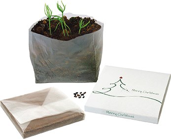 Das quadratische Wachstumsbehältnis beinhaltet die Erdtablette und Fichte-Samen für Ihren Weihnachtsbaum. Durch die flache Form lässt es sich gut überreichen. Einfach wässern und schon nach kurzer Zeit wächst eine kleine Baum-Pflanze. Platz für Ihren Werbeeindruck ist auf dem Standardmotiv des Schubers oder eine eigene Gestaltung, jeweils ab 250 Stück.