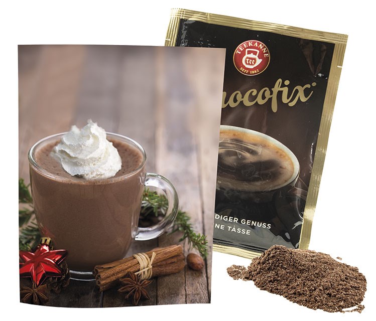 Über eine Tasse heiße Schokolade in der kalten Jahreszeit freut sich jeder Kunde. Einfach mit heißem Wasser oder warmer milch genießen. Das Klappkärtchen bietet ausreichend Platz für Ihre Werbeanbringung. Eine individuelle Gestaltung ist ebenso ab 250 Stück möglich