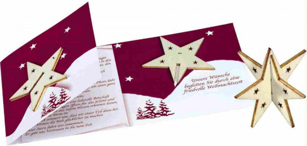 Diese ansprechende Weihnachtskarte enthält 2 Holzteile, die zu einem Holzstern zusammengesteckt... mehr