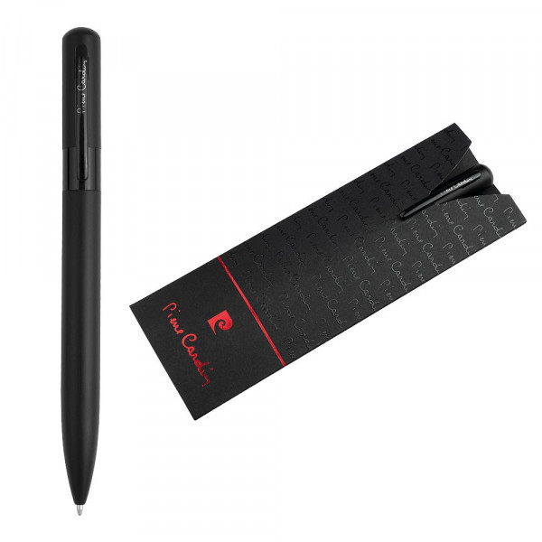 Pierre Cardin Luxus-Kugelschreiber mit Drehmechanismus. Der Stift hat einen metallmatten Körper in schwarzem Design mit einem glänzenden Clip. Er enthält eine hochwertige 1 mm Mine in der Schreibfarbe Blau. Verpackt in einer Pierre Cardin Box, versendet mit Echtheitszertifikat. Empfohlene Veredelungstechnik: Lasergravur L1 Maximale Veredelungsgröße: 30 × 5 mm (am Korpus) Abmessungen: Kugelschreiber: Ø 1,1 × 13,5 cm Verpackung: 5,5 × 15,5 cm Kartoneinheit: 60 Stück