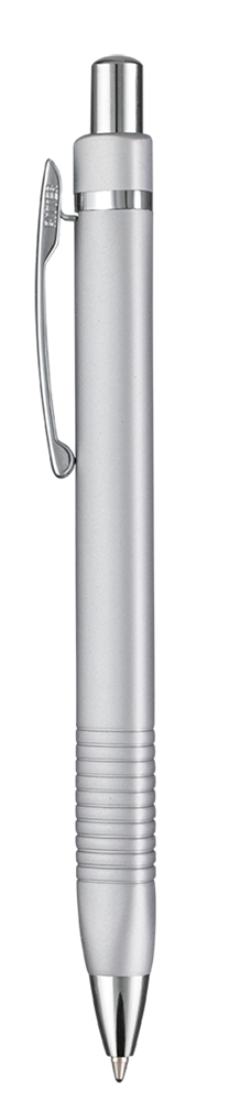 Wertigkeit und Corporate Identity zum kleinen Preis. Das dreieckige Aluminiumgehäuse vermittelt die Wertigkeit dieses Druckkugelschreibers, der mit einer blau-schreibenden Budget-Großraummine ausgestattet ist. Das dreieckige Gehäuse liegt äußerst gut in der Hand und garantiert ein ermüdungsfreies Schreiben. Aluminium eignet sich hervorragend für Lasergravuren, da das Schriftbild in silber-grau exakt zu den vernickelten Beschlagteilen passt.