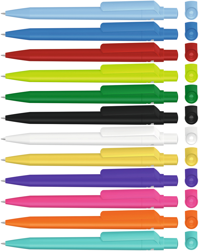 Druckkugelschreiber mit gedeckt mattem Gehäuse, Clip, Drücker und Stopfen aus recyceltem... mehr