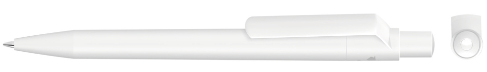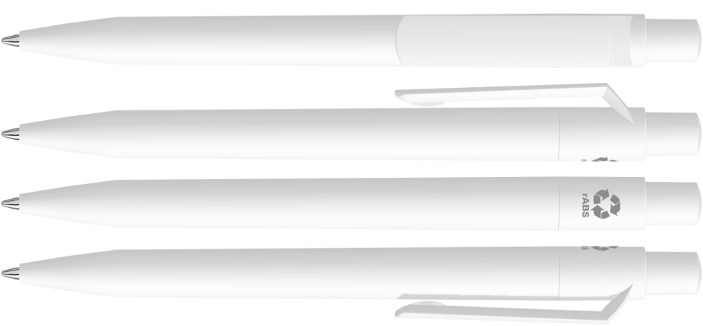 Druckkugelschreiber mit gedeckt mattem Gehäuse, Clip, Drücker und Stopfen aus recyceltem ABS-Kunststoff.