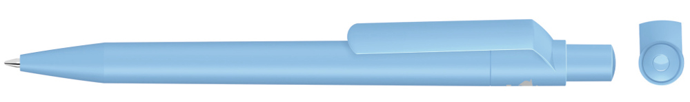 Druckkugelschreiber mit gedeckt mattem Gehäuse, Clip, Drücker und Stopfen aus recyceltem ABS-Kunststoff.