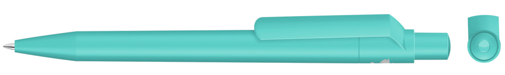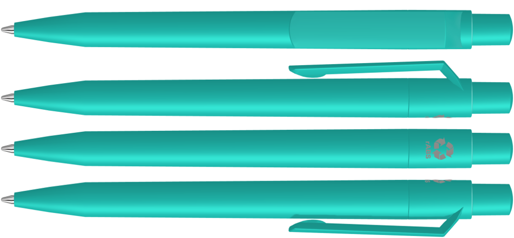 Druckkugelschreiber mit gedeckt mattem Gehäuse, Clip, Drücker und Stopfen aus recyceltem ABS-Kunststoff.