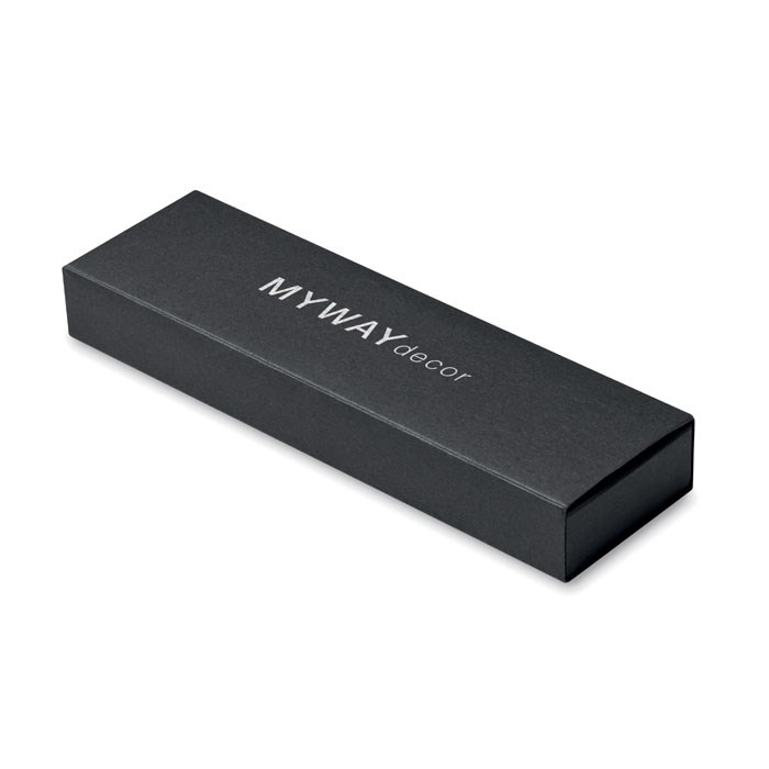Schreibset aus recyceltem Aluminium. Bestehend aus 2 Kugelschreibern (1x blaue Tinte, 1x Graphitmiene). Präsentiert in einer Schachtel aus recyceltem Papier.