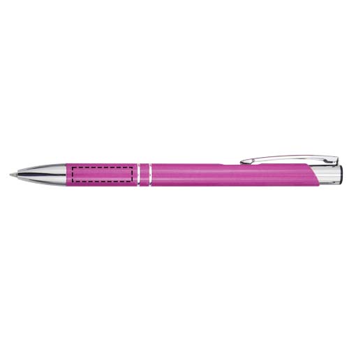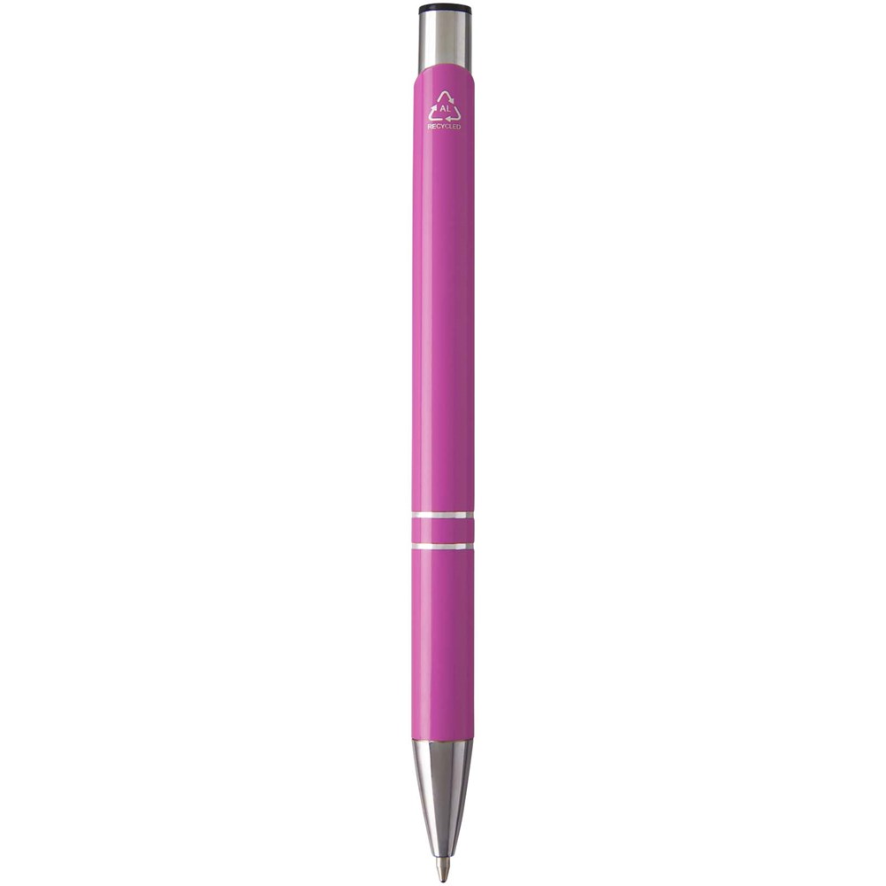 Kugelschreiber aus recyceltem Aluminium in lackierter Ausführung, poliert, glänzend, mit markanten Chromdetails. Recyceltes Aluminium reduziert die Menge an Deponiemüll, schont die natürlichen Ressourcen und reduziert die Treibhausgasemissionen. Tintenfarbe: Blau. Schreiblänge: 1000 Meter. Schreibspitze: 1 mm.