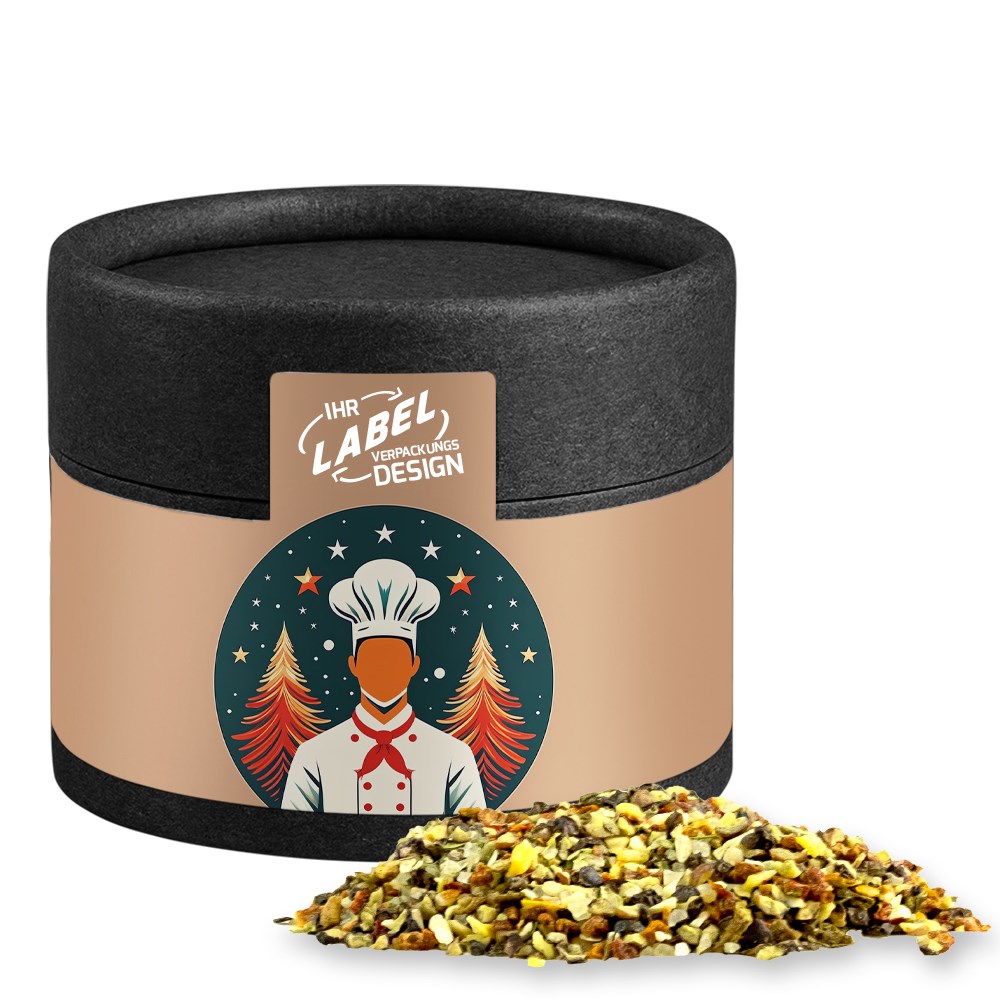 Weihnachts Gewürzmischung Chefsache, ca. 30g, Kraftpapierdose Mini schwarz