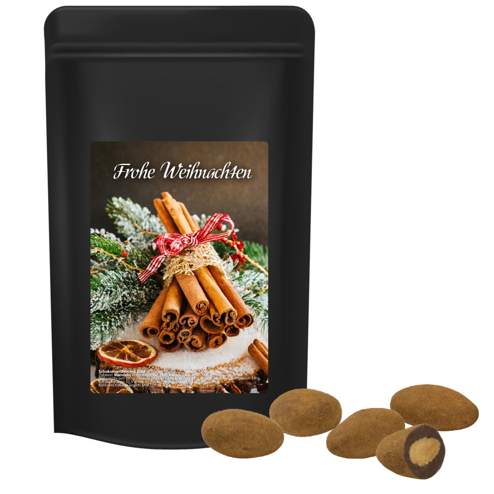 Schokomandeln mit Zimt, ca. 80g, Standbeutel Midi schwarz