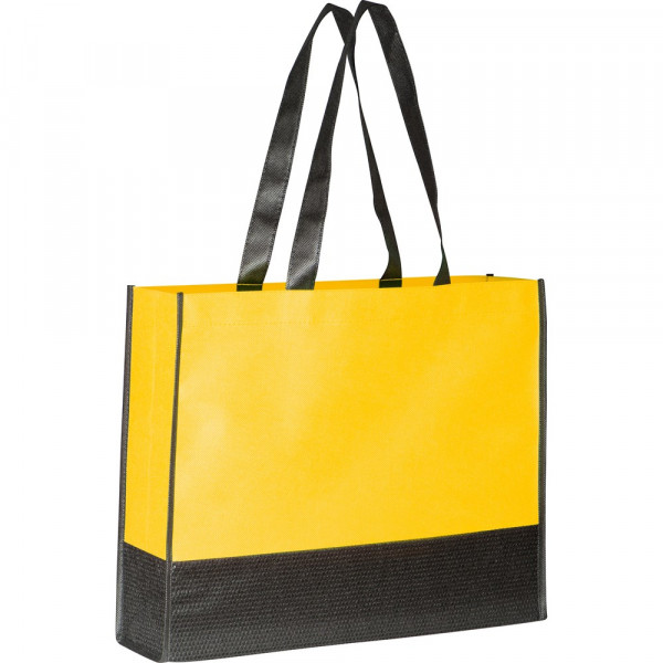 Non Woven Einkaufstasche (Grammatur 80 g/m²) in vielen Farben mit schwarzem Boden und Tragehenkeln. Ihre Werbung wird vorne auf die Tasche gedruckt. Für 2C oder mehr, Preise auf Anfrage.