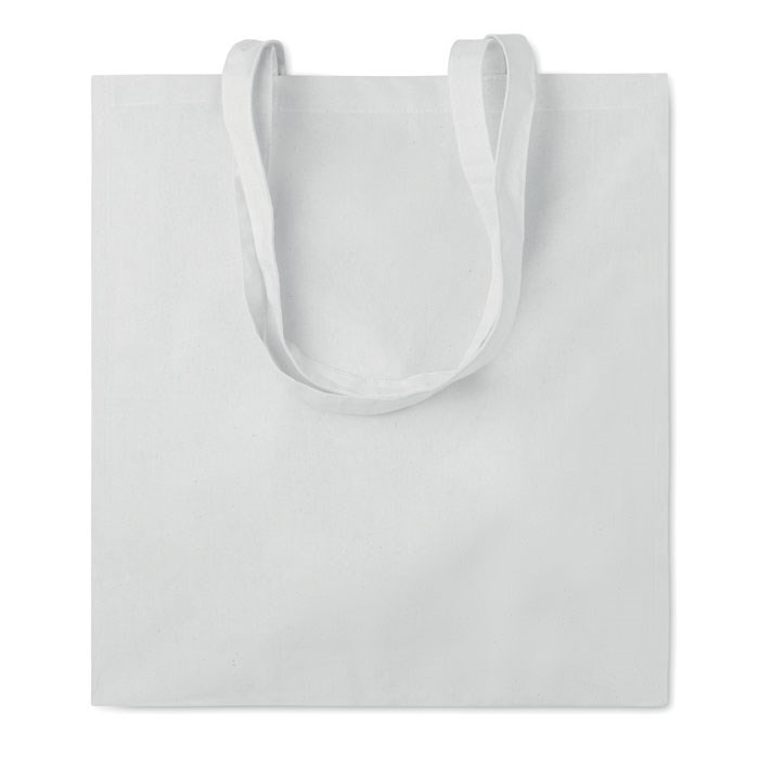 Shopping Tasche mit langen Tragegriffen und seitlicher Falz. Baumwolle 140g/m².