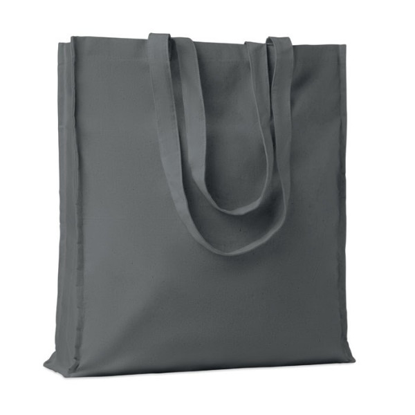Shopping Tasche mit langen Tragegriffen und seitlicher Falz. Baumwolle 140g/m².
