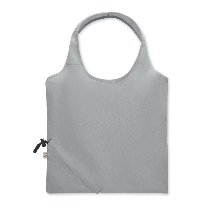 Faltbare Einkaufstasche aus recycelter Pre-Consumer-Baumwolle (70% recycelte Baumwolle und 30% RPET). 140 g/m². Artikel kann nach dem Bedrucken schrumpfen.