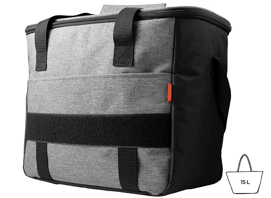 Die Vorteile in Kürze: - Elegante grau melierte Oberfläche, die zu jedem Stil passt. - Großes Fassungsvermögen für einfache Aufbewahrung Ihre Speisen und Getränke. - Vordertasche zur Aufbewahrung Ihres Bestecks ??und anderen Accessoires wie Schlüssel, Geldbörse, Smartphone usw. - Netz an der Seite zur Aufbewahrung einer Flasche. - Klettverschluss auf der Vorderseite, um Abzeichen oder Ähnliches anzubringen. - Flaschenöffner am Reißverschluss!