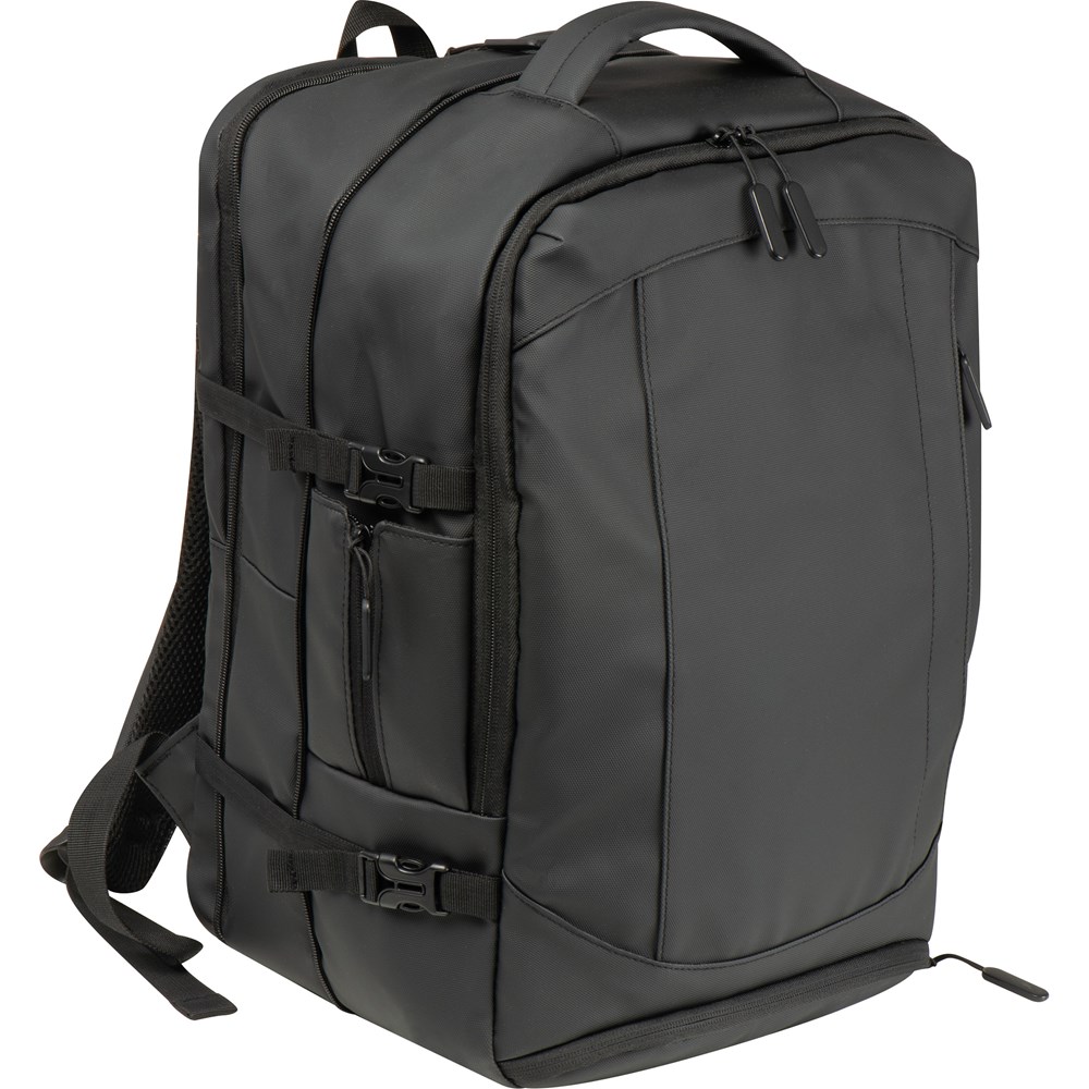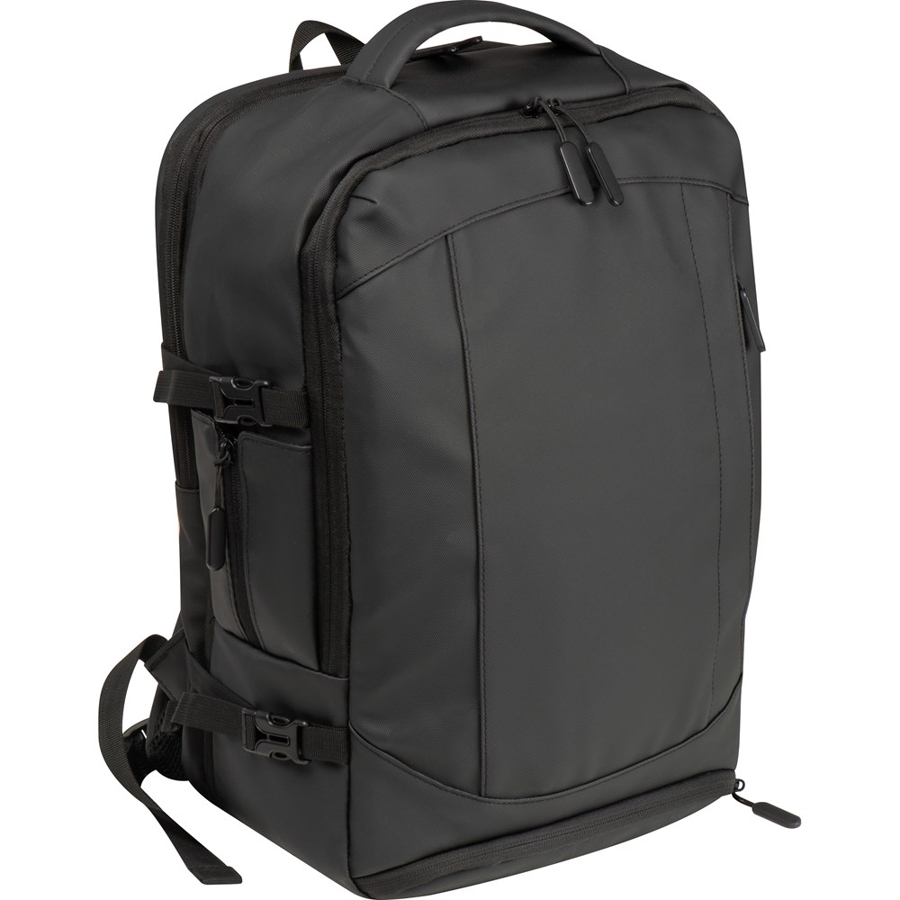 Hochwertiger Rucksack aus 300D Polyester. Der wasserdichte Rucksack verfügt über eine Vielzahl von Fächern: Laptopfach mit Verschluss und zusätzlichem Einsteckfach, Sicherheitsfach am Rücken, Seitenfach mit Netzeinsatz und Reißverschluss zur Erweiterung, Schmutzfach am Boden, gepolstertem Einsteckfach unterhalb der Front, seitlichem Reißverschlussfach vorne, diversen Einsteckfächern innen. Zusätzlich hat er noch einen USB-Anschluss mit Kabel, zwei Tragegriffe, einen Trolleygurt, gepolsterte Schultergurte und einen gepolsterten Rücken sowie einen Reißverschluss um den Rucksack zu erweitern. Der perfekte Begleiter, nicht nur auf Geschäftsreisen. Ihre Werbung drucken wir auf das Frontfach.