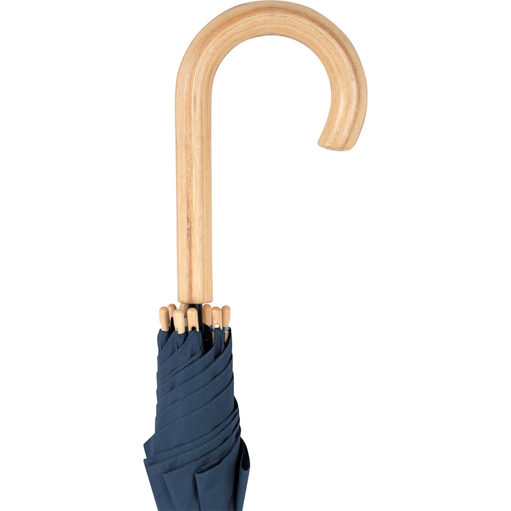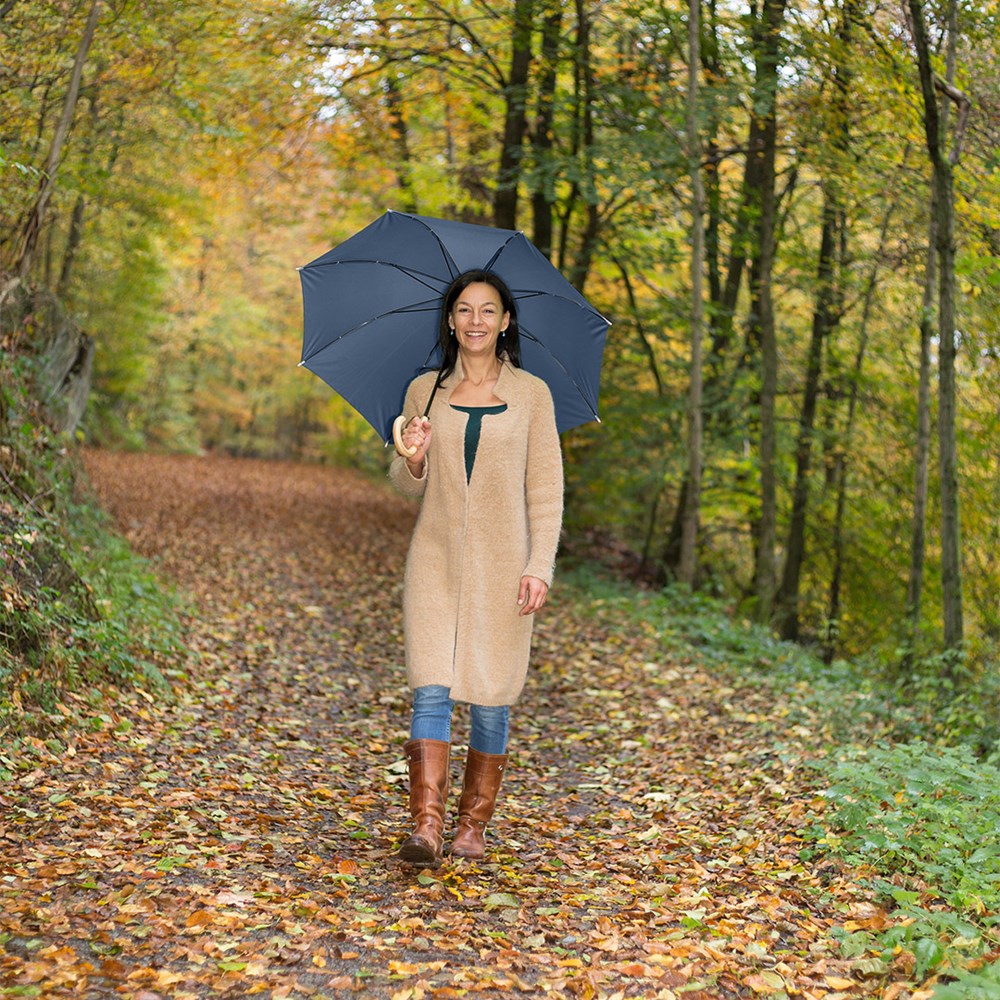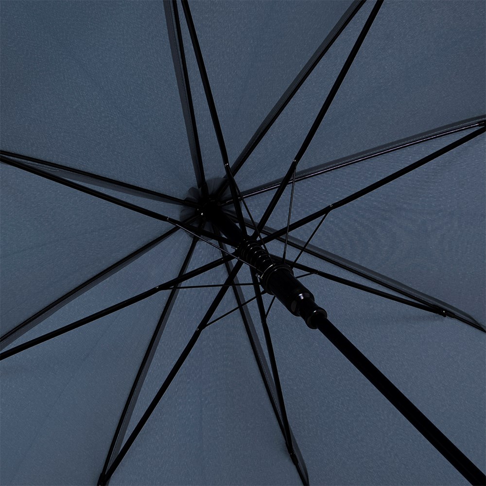 Preislich attraktiver nachhaltiger Stockschirm mit Bezug aus recycelten Kunststoffen Komfortable Automatik-Funktion zum schnellen Öffnen, Windproof-System für höhere Gestell-Flexibilität und bessere Windsicherheit, flexible Fiberglasschienen, Polyester-Pongee Bezugsmaterial aus recycelten Kunststoffen, farbabhängig auch mit waterSAVE®-Bezugmaterial und mit waterSAVE® Label auf dem Schließband erhältlich, Echtholzspitzen, Rundhakengriff aus Echtholz, höherer Korrosionsschutz durch schwarze Galvanisierung des Stahlstocks