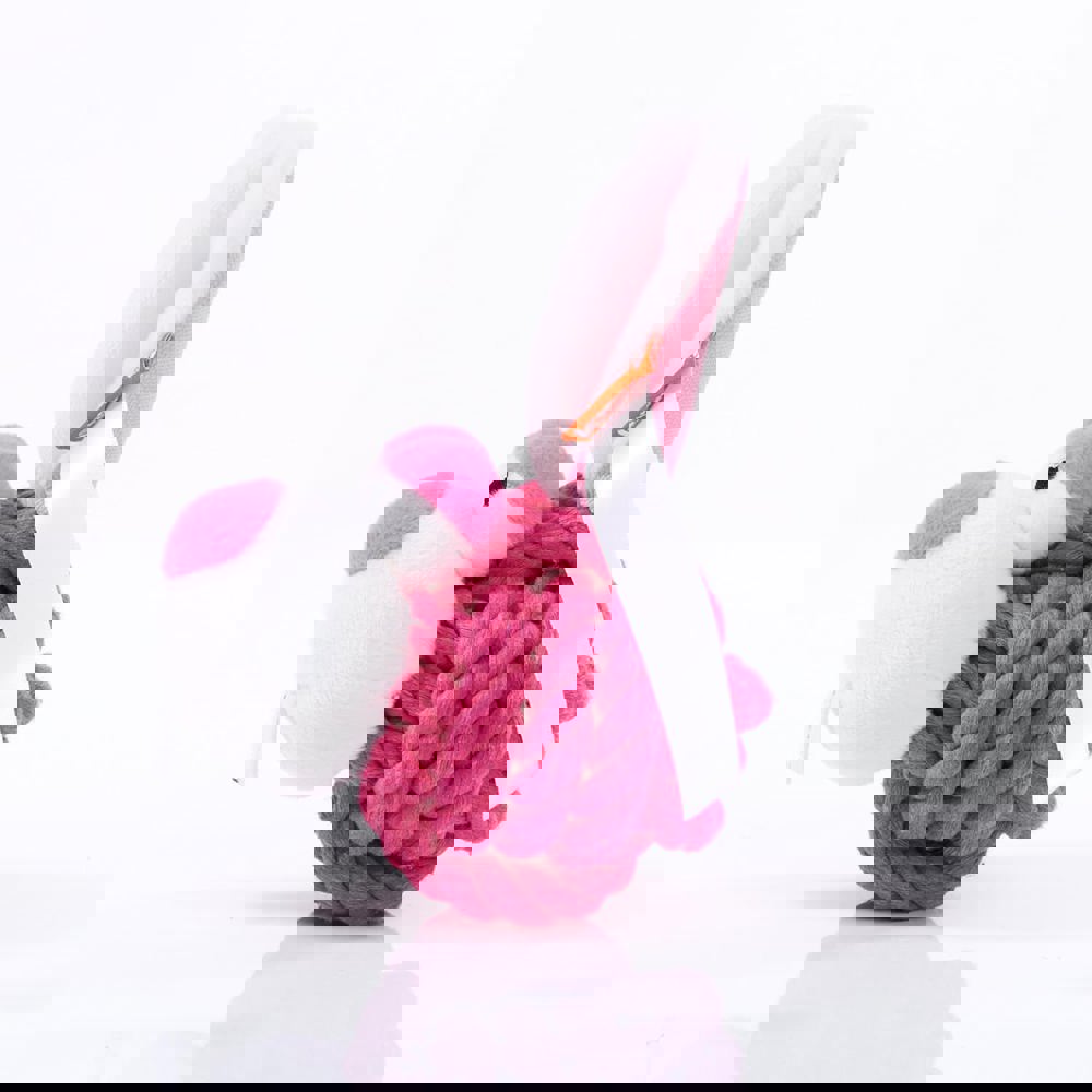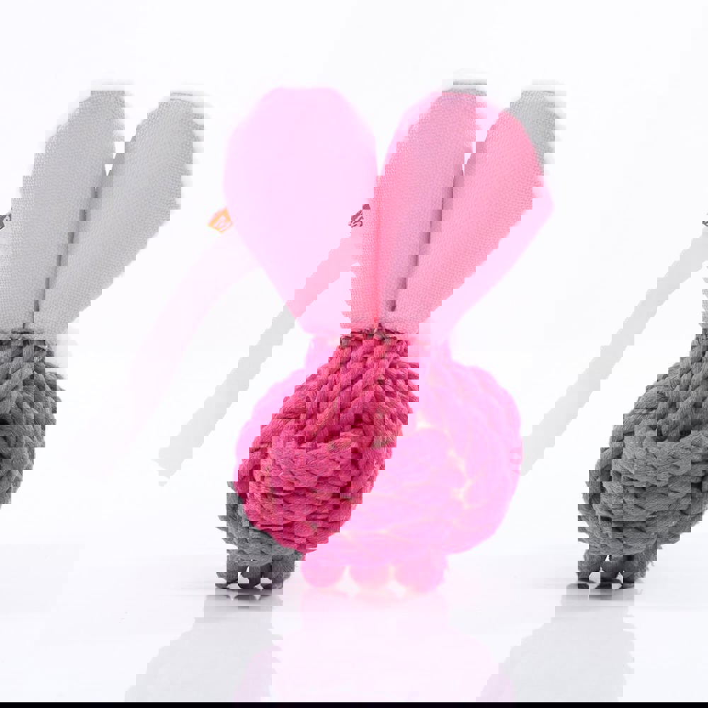 Das Hundespielzeug Knotentier Hase begeistert mit seinem charmanten Design und lädt Hunde zum Apportieren, Zerren und Herumtragen ein. Die geknotete Struktur spricht den natürlichen Spieltrieb an und animiert zum ausgiebigen Spielen. Beim Kauen wird zusätzlich der Speichelfluss angeregt – ein positiver Nebeneffekt für die Zahnhygiene. Auf der angebrachten Werbefahne lässt sich ein Logo oder Slogan platzieren, wodurch der Hase zu einem sympathischen Werbeträger für Unternehmen mit einer tieraffinen Zielgruppe wird.