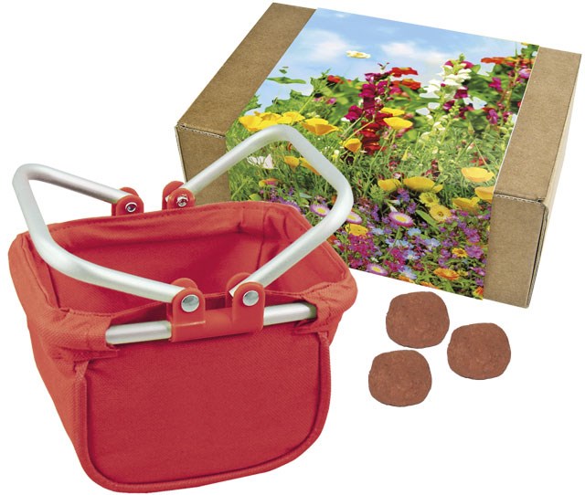Der Utensilo „Wonderball“ mit handgefertigten Tonkugeln und Blumensamen ist ein nachhaltiges und werbewirksames Präsent. Einfach die Kugeln auf Grünflächen oder Balkonkästen legen, wässern und bunte Blumen sprießen. Der Werbedruck erfolgt auf dem Standardmotiv, ab 100 Stück ist eine individuelle Banderolengestaltung möglich. Inhalt: 5 Tonkugeln mit Samenfüllung, Samen: Bunte Blumenmischung.