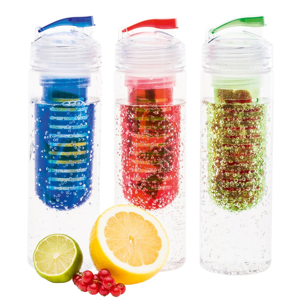 Mineralwasser ist gesund und Obst ist es auch. Grund genug, beides miteinander zu verbinden. Aromatisieren Sie Ihre tägliche Wasserration mit Ihrem Lieblingsobst. Einfach die Fruchtstücke in das dafür vorgesehene Sieb geben, verschließen, fertig! 700 ml